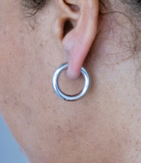 L’Argent Hoops embody effortless elegance and modern minimalism. Crafted from stainless steel and silver-plated for a polished, mirror-like shine, these single hoop earrings are the perfect balance of simplicity and sophistication.