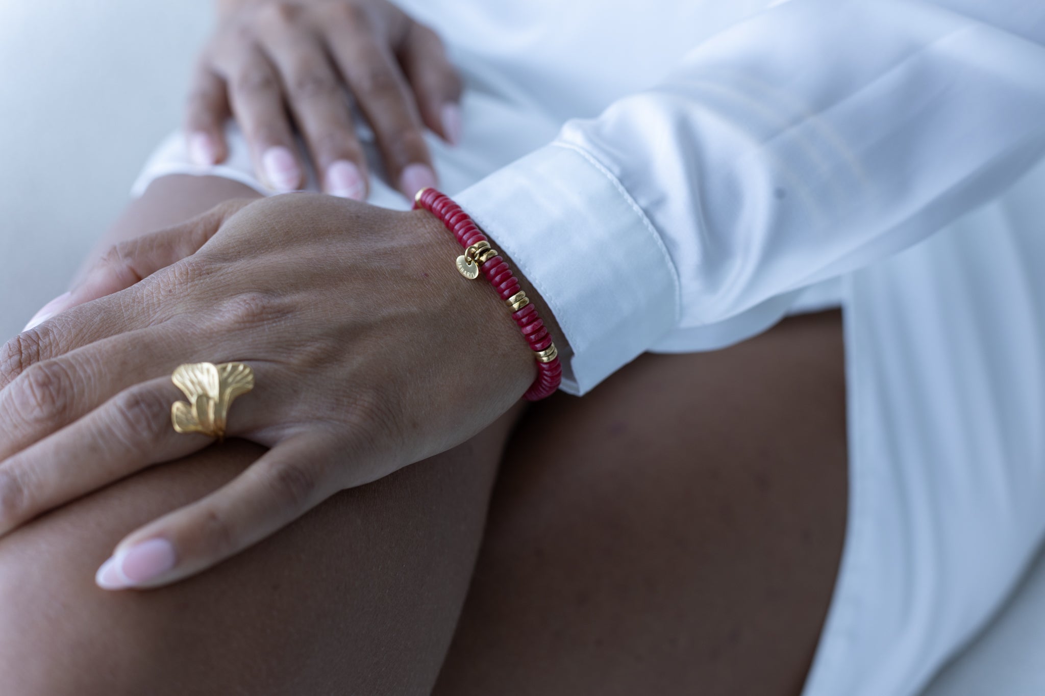 Designed for both comfort and elegance, it offers a perfect fit for any wrist — making it an effortless piece to wear alone or layered with other bracelets. The Le Rouge Bracelet adds a subtle yet striking touch of color, bringing warmth and confidence to every look.