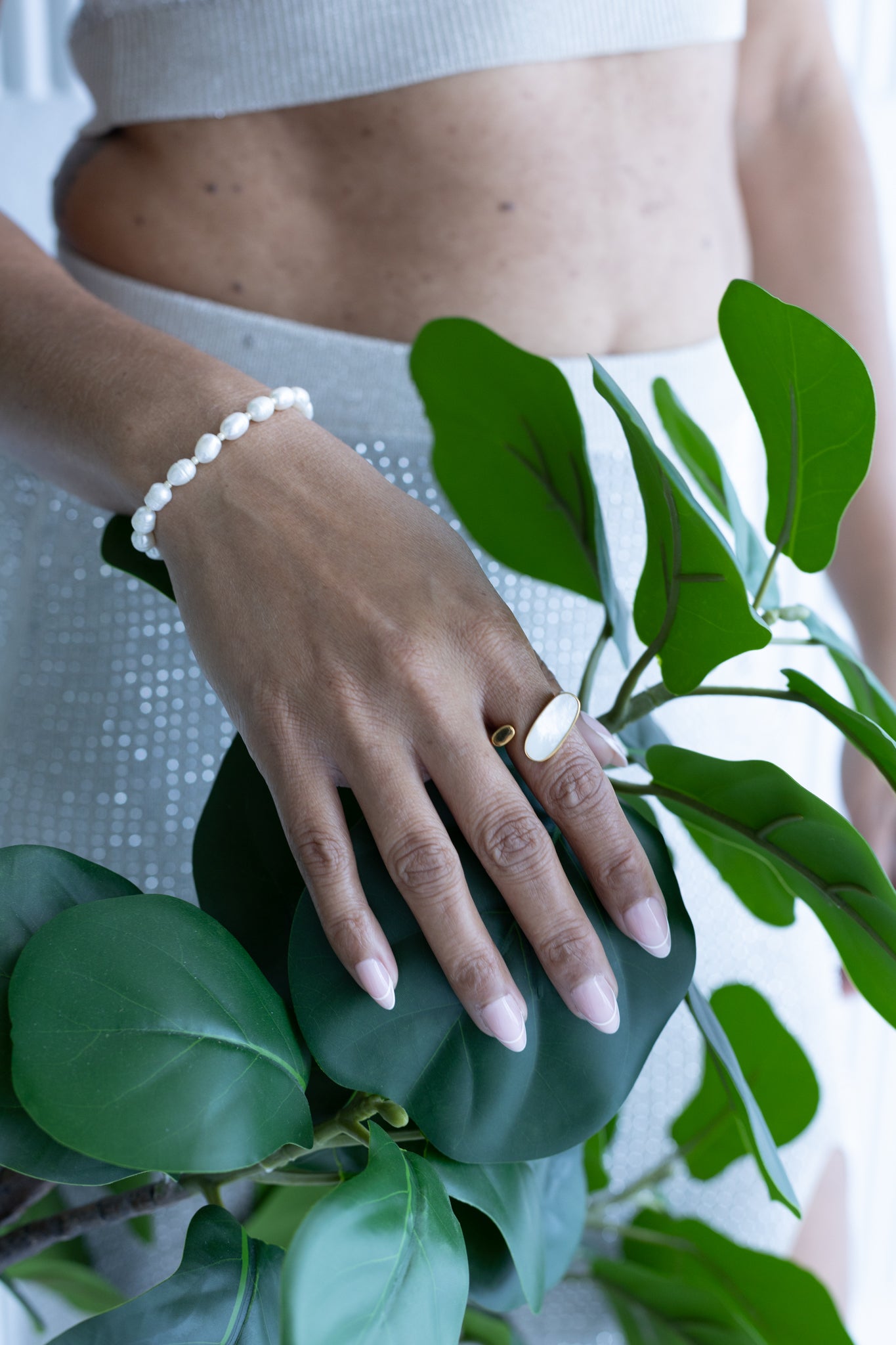 Refined yet modern, the Nacrée Ring adds an elegant touch to any look — whether worn alone as a statement of simplicity or paired with other pieces for a layered, contemporary style. Its smooth finish and organic shimmer make it a true symbol of understated luxury.