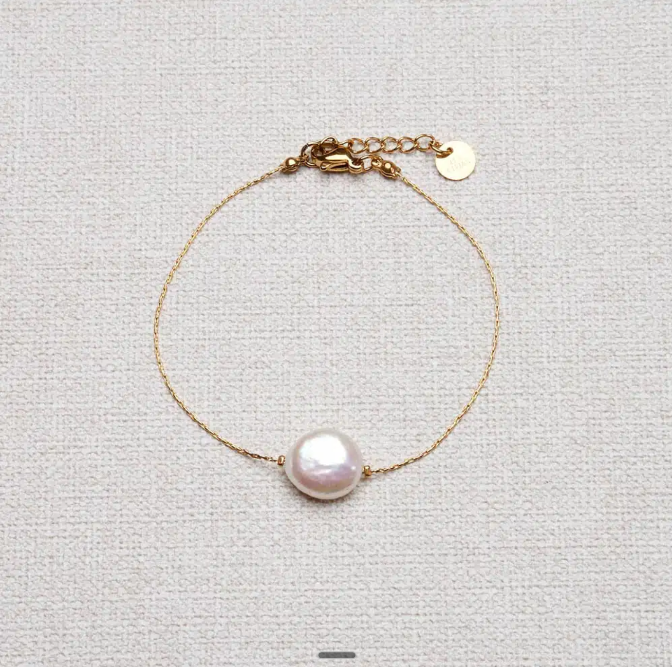 The Delicate Bracelet captures the beauty of simplicity and refined elegance. Crafted from stainless steel and gold-plated for a radiant finish, this bracelet features a smooth chain delicately accented with a flat freshwater pearl — a timeless detail that adds grace to any wrist.